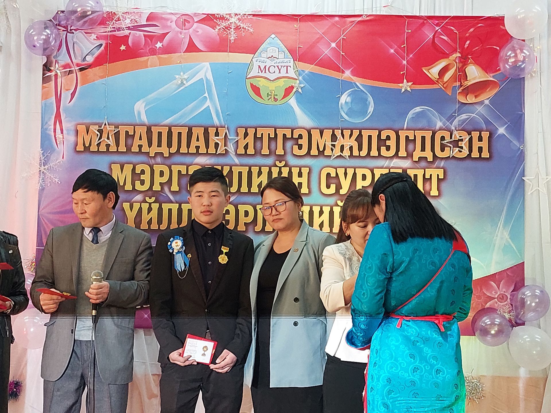 - Үсчин мэргэжлийн 3-р курсийн сурагч Ц.Амин-Эрдэнэ "Шилдэг сурагч"