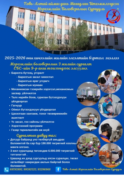 Дэлгэрэнгүй мэдээллийг 89795992, 99392525, 95296968 дугаарт холбогдож авна уу.